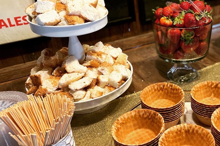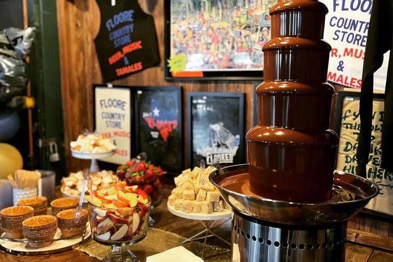 Make your event unforgettable with our premium chocolate fountain service! Perfect for weddings, parties, corporate events, and more, our chocolate fountain is a delicious and interactive treat your guests will love.